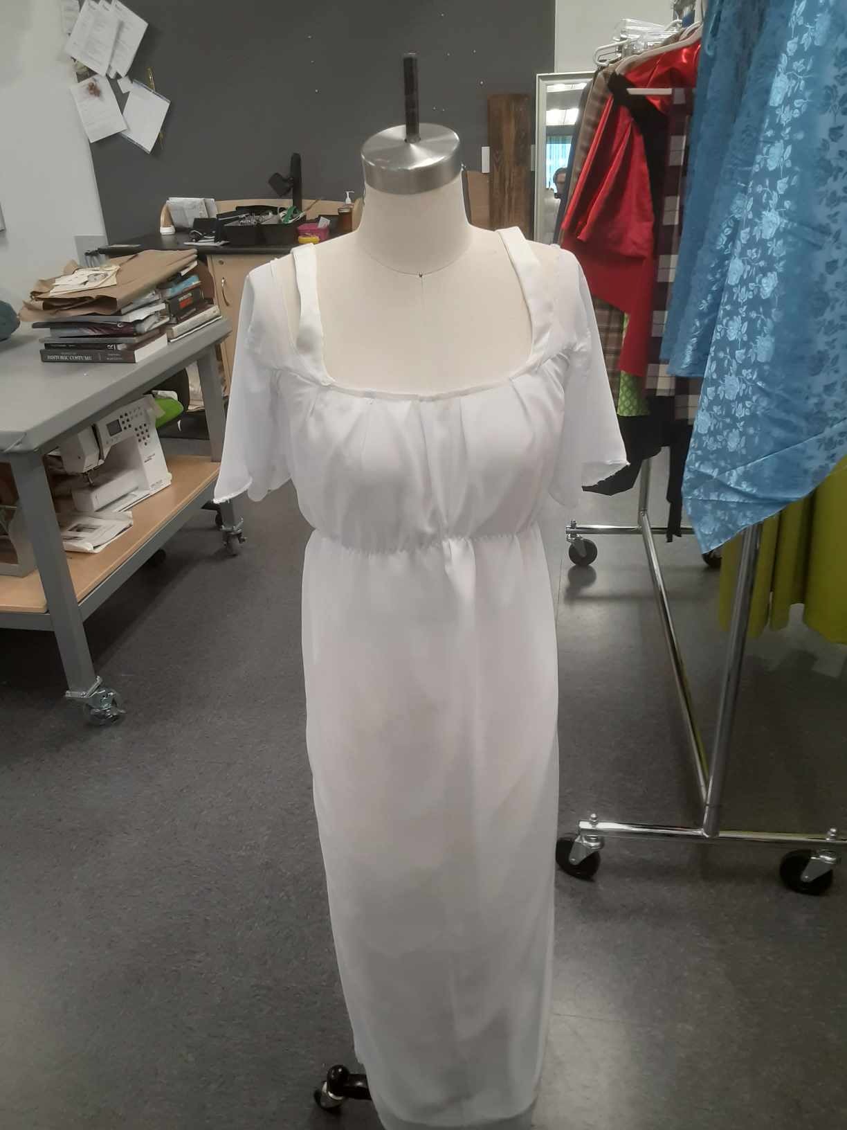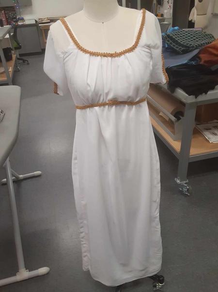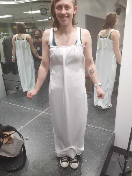 I was the Costume Lead for this production, making the majority of my work in the scope of management, but there were a couple costume items I got to work on directly. The most prominent items were the heavy alterations I performed on the "too bride" dress, and the drafting and building of the graduation stoles.