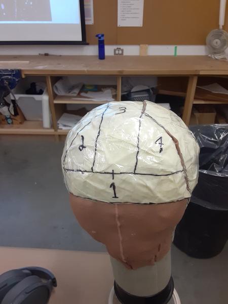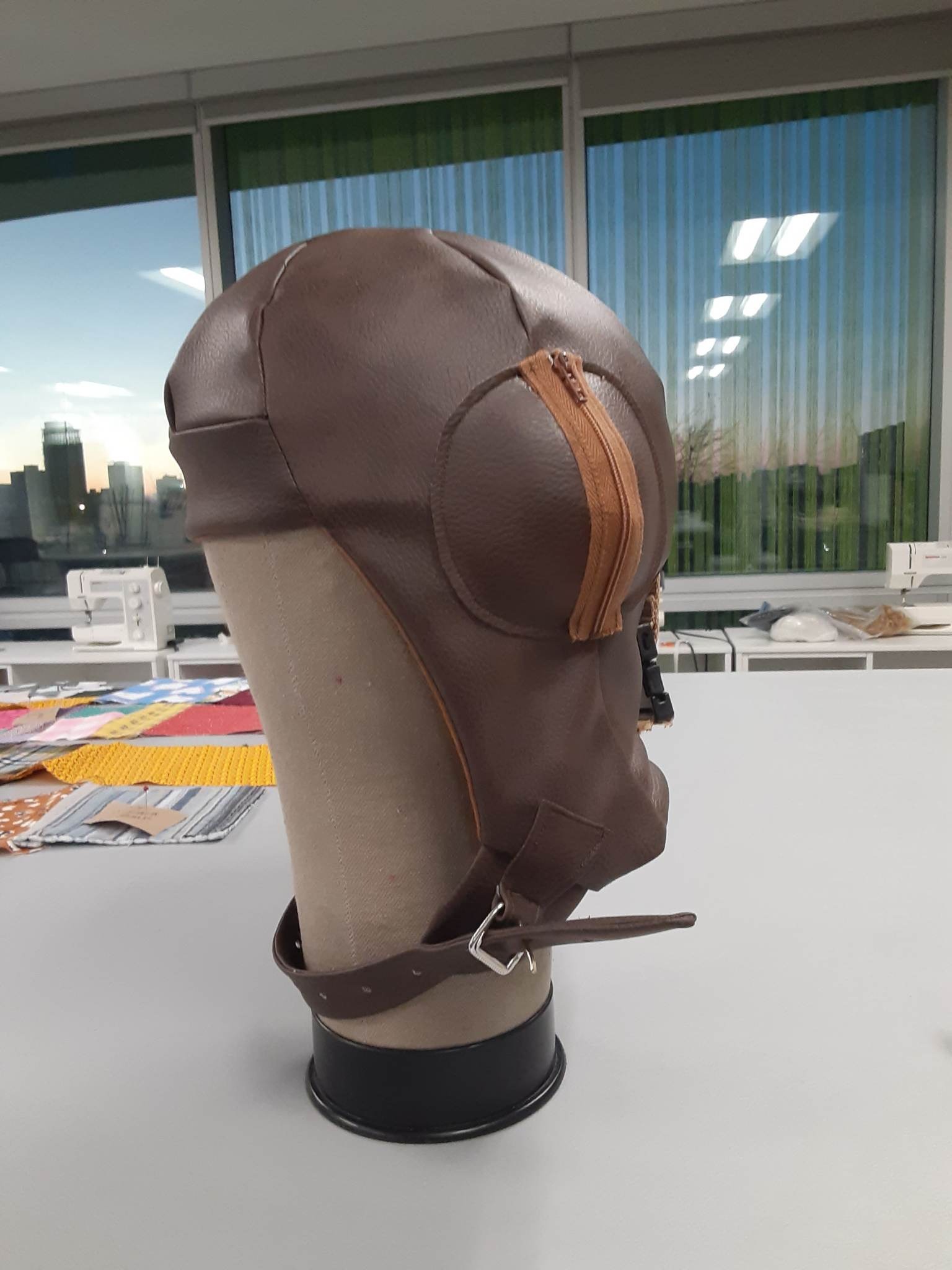 This project was made largely with vinyl leather, which was a new kind of material for me to work with. This project also gave me a lot of experience in drafting for a head, as this helmet was form-fitting.