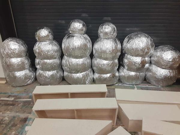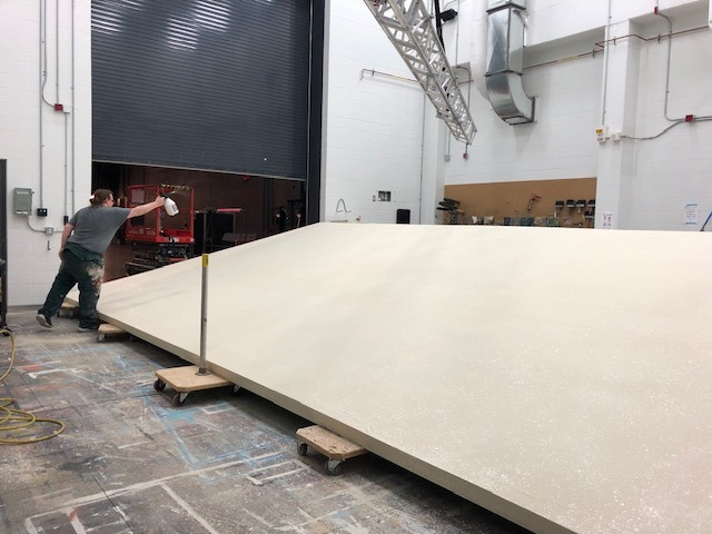 I got to work with applying fabric to flats, repeating techniques across many pieces with consistency, and using a sprayer. I had limited experience with sprayers prior to this show and now it has become one of my stronger techniques.